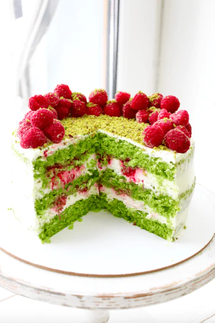 Этот необычный торт вы можете приготовить и дома. В состав бисквитных коржей входит шпинат, который придёт торту ореховые нотки. Идеальный десерт для Нового Года!