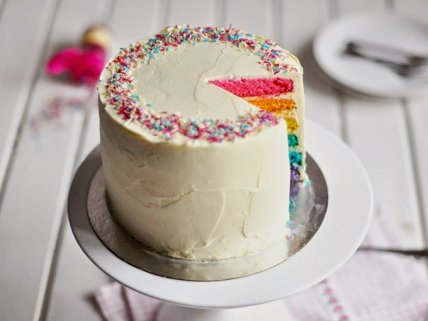 Великопепный торт "Радуга" кажется совсем обычным, пока вы его не разрежете. Предлагаем удивить любимую маму радужным буйством красок, к тому же этот яркий торт невероятно вкусен!