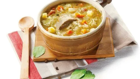 Подавайте капустняк с чесноком и салом.