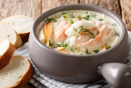 Горячий супчик с семгой и стручковой фасолью всегда поможет согреться в холодную погоду.