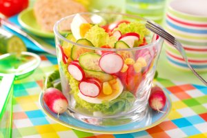 Из необычного сочетания продуктов можно приготовить очень вкусный, а главное полезный салат.