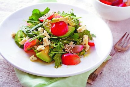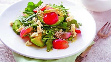 Необычный салат с рукколой, виноградом и авокадо
