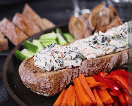 Нежная сливочная и вкусная закуска из соленых брюшек семги на хрустящем багете будет отличным украшением любой трапезы.