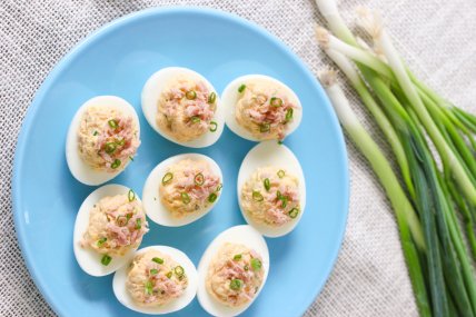 Очень вкусная закуска из яиц фаршированных обжаренными грибами с луком и заправленных сметаной с майонезом готовиться просто, а получается необыкновенно вкусной. Обязательно попробуйте приготовить!