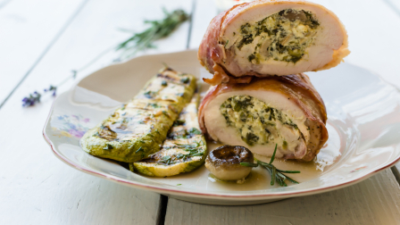 Куриный рулет – простое и сытное блюдо. Очень вкусный и проверенный рецепт из нежнейшего куриного филе в сочетании с грибами и шпинатом – просто пальчики оближешь!