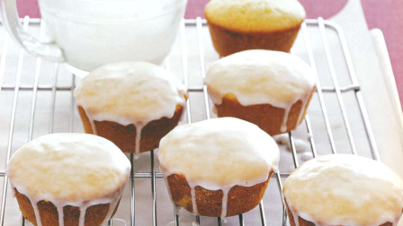 Яблочная начинка в этих кексах делает тесто более влажным и рыхлым. А медовая глазурь дарит тепло и бесподобный аромат. Для посыпки хорошо подойдут грецкие орехи, миндаль и арахис.