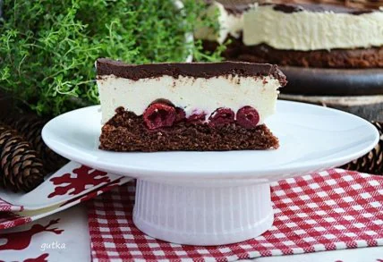 Торт з вершково-сирним кремом, вишнями та шоколадом