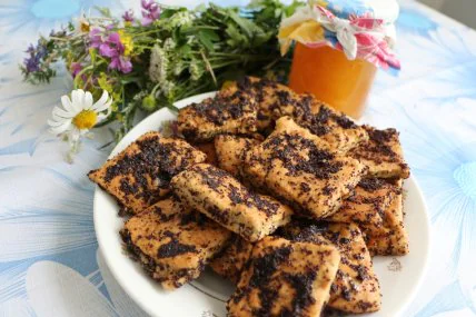 Муку замесите с яйцом, 1 ст. л. сахара, 100 мл воды и 80 г перемытого мака.Раскатайте тонкие коржи и испеките в духовке.Затем подготовьте подливу: 200 г запаренного мака разотрите со 100 г сахара, добавьте мед и 200 мл воды.Коржи разломайте на 3–4 куска и размешайте с этой сладкой подливой.Приятного аппетита!