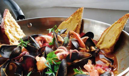Это блюдо представляет собой ассорти из различных морепродуктов с добавлением густого рыбного соуса. Среди наиболее распространенных ингредиентов выделяются мидии, кальмары, креветки, лангусты, каракатицы и прочие ракообразные.