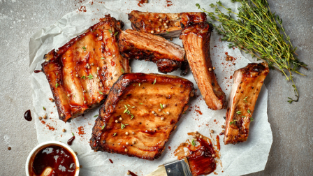 Смешиваем все ингредиенты (кроме мяса, конечно) в подходящей по размеру посуде.Ребрышки разрезаем так, чтобы на порцию приходилось по одному ребру. Если куски крупные и вы будете готовить мясо в духовке, можно предварительно отварить их в течение 15-30 минут. Кладем мясо в соус, хорошо обмазываем каждый кусок и убераем в холодное место минимум на 30 минут для маринования.Выкладываем ребра на противень, накрываем фольгой и запекаеме от одного часа до полутора при температуре 220 градусов. Если мясо выделит слишком много сока, сливаем его.Оставшимся соусом смазываем ребра каждые 20-30 минут. Через 40 минут фольгу снимаем и запекаем мясо до румяности.Если соус останется, варим его остатки на медленном огне, пока сахар полностью не растворится, и подаем отдельно для тех, кто любит рёбрышки с двойной порцией соуса.Как подавать