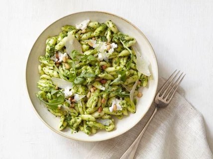 С таким блюдом как паста можно бесконечно экспериментировать. Один из вкусных вариантов подачи пасты - под соусом из нежной свежей рукколы, орешков и пармезана. Зеленый цвет пасты также добавит яркости вашему столу.