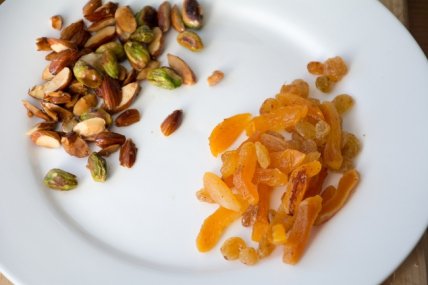 Разогрейте на сковороде 1 ст.л. топленого масла и обжарьте курагу, изюм.