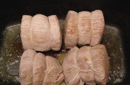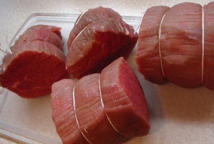 Мясо промойте и порежьте на порционные кусочки по 250-300 г. Обвяжите мясо обычным хлопчатобумажным шпагатом дважды по окружности.