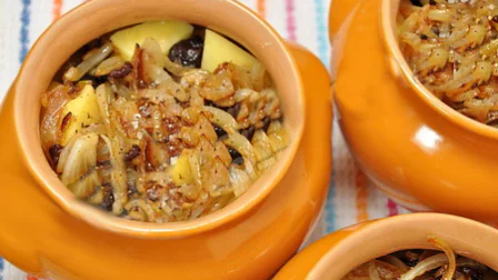 Жирную баранину нарежьте небольшими кусками, обмойте, положите в кастрюлю, залейте холодной водой так, чтобы она покрыла мясо, и поставьте варить на слабый огонь.Появляющуюся пену снимайте шумовкой.Через 1,5–2 часа наполовину готовое мясо выньте из бульона. Лук нашинкуйте, положите в чистую кастрюлю и тушите на жире, снятом с бульона, до тех пор, пока лук не приобретет красноватый оттенок.После чего в кастрюлю заложите мясо и тушите еще некоторое время вместе с луком.Затем мясо залейте процеженным бульоном, добавьте соль, перец, мелко нарезанную зелень кинзы и дайте еще раз закипеть.Как и с чем подавать