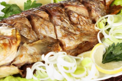 Это блюдо лучше всего подойдет для особого ужина. Карп получается очень нежным, а грецкий орех с лимоном наполнят рыбное филе особым терпким вкусом и пикантной кислинкой.