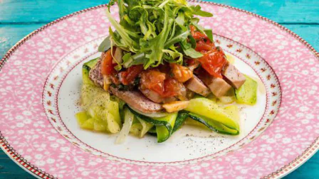 Тунец на овощной подушке: пошаговый рецепт