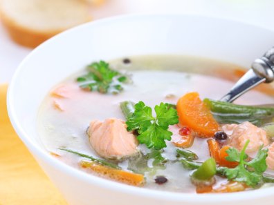 Также со спаржевой фасолью можно приготовить и норвежский суп с семгой. Присутствие в нем имбиря превращает суп в ресторанное блюдо.