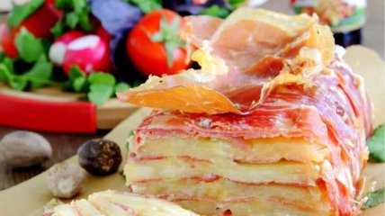 Картофельный мильфей с хамоном