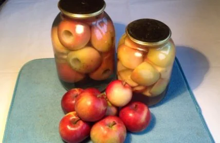 - Специи расфасовать в две трехлитровые банки, предварительно прошедшие стерилизацию. Затем тару полностью заполнить целыми яблоками, причем их размер не должен препятствовать прохождению через горлышко банки.