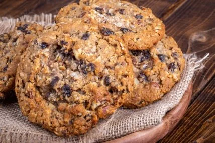 По рецепту Сooking.kiev.ua печенье готовится так быстро, что вы даже не успеете посмотреть серию "Друзей". К тому же, рецепт можно немного изменить — например, вместо изюма можно положить нарезанную курагу, финики, сушеную клюкву, орехи или же замиксовать все. Хлопья можно использовать обычные или быстрого приготовления.