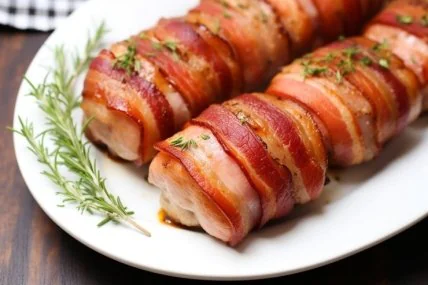 Подавайте котлеты в беконе с любимым соусом, витаминным салатом и ароматным картофелем. Наслаждайтесь блюдом, приятного аппетита!