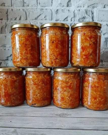 Эта заготовка – овощи с рисом – может быть готовым сбалансированным гарниром. На theLime поделились простым рецептом. Количество ингредиентов приведено на 4 литровых банка.