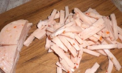 4. Ветчину режем соломкой.