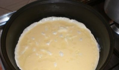 2. На большой сковороде жарим омлет.