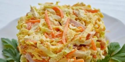 Рецепт дня: салат с корейской морковью, ветчиной и омлетом