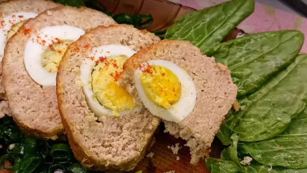 Как подавать мясной рулет с яйцом.