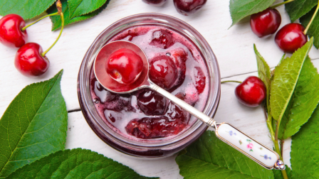 Черешню очистіть від кісточок.Волоські горіхи наріжте шматочками розміром з кісточку черешні.У кожну черешню покладіть по шматочку горіха.Цукор залийте водою і, помішуючи, доведіть до кипіння.Зніміть сироп із вогню, залийте їм черешню так, щоб він повністю покрив плоди.Залишіть на 3:00.Потім варіть черешню на слабкому вогні, поки плоди не стануть прозорими.При варінні сироп не повинен кипіти, щоб ягоди черешні залишилися цілими.За 10 хвилин до кінця варіння додайте у варення сік лимона, за 5 хвилин – ваніль.Готове варення розлити гарячим по банкам і щільно закупорьте.Як і з чим подавати