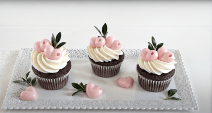 Ці красиві прикрашені кексики можна приготувати власноруч. Рецептом шоколадних капкейків з карамельною начинкою у своєму відео поділилась кулінарна блогерка Надя Бурлачук.
