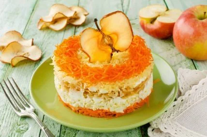 Ми ділились рецептом закуски "Чоловічий каприз". Тепер розповідаємо, як приготувати цікавий і легкий французький салат з яблуком та морквою.