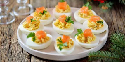 7.Нафарширувати яйця начинкою та одразу подати на стіл.
