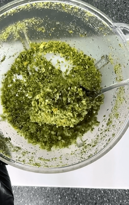 1.У чаші блендера з’єднати крекер з руколою та оливковою олією, подрібнити до однорідності.