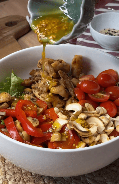 6.Окремо поєднати всі інгредієнти для заправки та полити салат.
