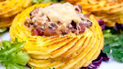 Сьогодні ми пропонуємо приготувати оригінальну й апетитну страву – кошики з картоплею, сиром та овочами. Вони не тільки смачні, а й дуже ефектно виглядають на столі, тож чудово підійдуть як для сімейного обіду, так і для святкового частування. Рецептом з нами поділилися на Instagram-сторінці "katia_cooking_".