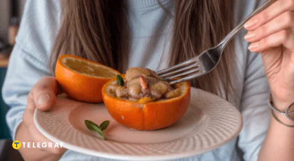 4. Потім в порожні половинки апельсина викладіть мʼясну суміш. Перекладіть "апельсинки" у форму для запікання. Відправте їх у розігріту до 200 градусів духовку на 30-40 хвилин.