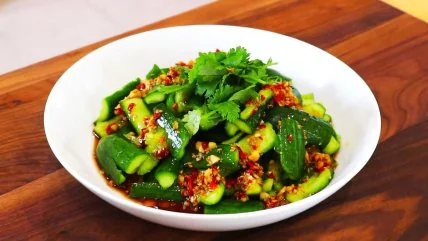 З огірків готують безліч салатів — від легких весняних із яйцями та зеленню до пряних, пікантних закусок. Один із найцікавіших варіантів — це мариновані биті огірки.
