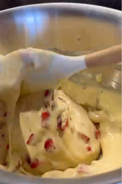 3.Додати нарізану полуницю та обережно перемішати лопаткою знизу вгору.