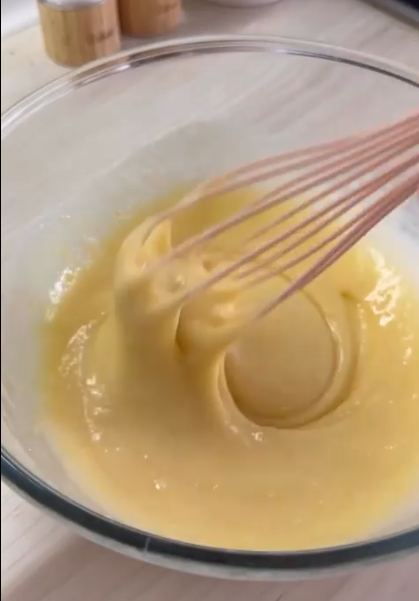 2.Влити молоко, додати вершкове масло та просіяне борошно, перемішати до однорідності.