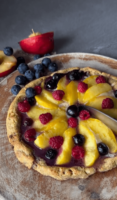 За рецептом, яким поділилась в Instagram Марія Брилковська, піца готується на основі кисломолочного сиру з додаванням горіхової пасти. Особливого смаку додає поєднання ягід, фруктів та твердого сиру.