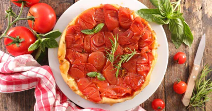 Соковиті помідори, хрустке тісто й трішки магії: рецепт томатної тарти з фетою та песто (відео)