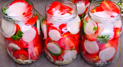Щоб насолодитися маринованими помідорами, не варто чекати тижнями. За цим простим рецептом мариновані помідори готові до вживання вже на наступний день. Усе робиться швидко й просто. Завдяки меду, часнику та свіжій зелені помідори виходять ароматними, ніжними й з приємною солодкуватою ноткою.