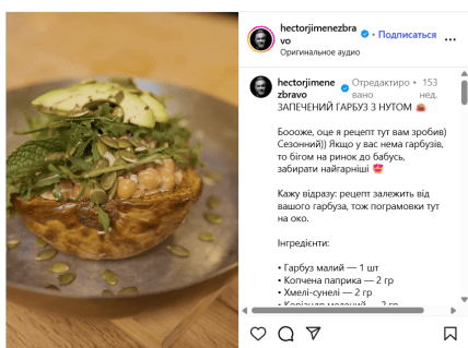 Але сьогодні ми пропонуємо трохи інший варіант — запечений гарбуз із нутом та ароматними спеціями. Ця страва одночасно легка, ситна і неймовірно смачна, ідеально підходить для обіду чи вечері. Рецептом з нами поділилися на Instagram-сторінці "hectorjimenezbravo".