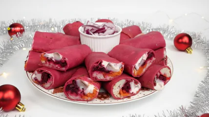 "Шубою" на святковому столі вже давно нікого не здивуєш. Цей салат з оселедцем став невід’ємною частиною новорічного меню. Але якщо змінити подачу і перетворити звичну "Шубу" на ефектну порційну закуску в тонких рожевих налисниках, то вау-ефект гарантовано.