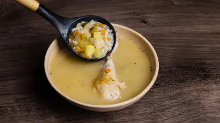 Якщо ви не любите рис, використовуйте перловку. Але пам'ятайте, що її треба замочувати на ніч і варити окремо до напівготовності, інакше вона зробить суп слизьким. Замість курячих гомілок можна взяти яловичі ребра. Смак буде ще насиченішим, але час варіння бульйону збільшиться до 1,5–2 годин. Якщо ви не їсте м’ясо, його можна замінити на білі гриби.