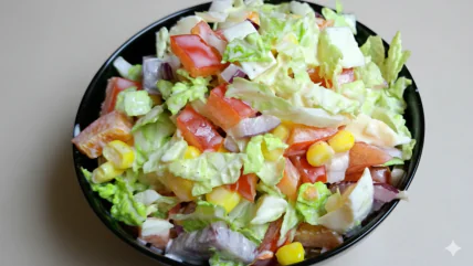 Після свят хочеться повернутися до легкого раціону. Саме у такі дні можна приготувати легкий салат зі свіжих овочів з хрумкою пекінською капустою. Замість майонезу він заправляється соусом із йогурту та гірчиці, тому страва виходить справді легкою.