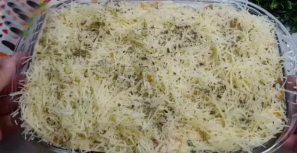 - Форму для запікання змастити олією. Викласти половину пюре і посипати тертим сиром.
