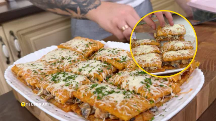 Страва нагадує великі запечені деруни, тільки з соковитою вершковою начинкою з курки та печериць усередині. Рецептом поділився кулінар Іван Янюк на своєму YouTube-каналі. Це чудова ідея для обіду або вечері, коли хочеться чогось знайомого, але з цікавою подачею.
